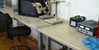 Etabli de laboratoire sur pieds métallique, mélaminé blanc, avec évier acier inox incorporé. Dimensions 240x90cm, hauteur 90 cm